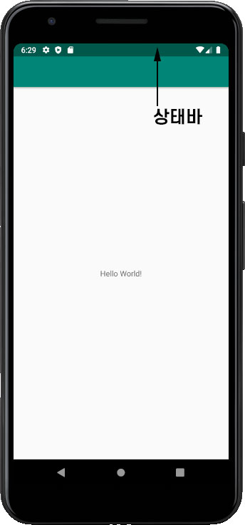 상태바는 단말기 최상단에서 단말기의 상태를 표시해주는 Bar입니다. 직접만든 모바일앱과는 무관하며 앱에서 해당 영역을 제어할수있는 범위도 제한적 입니다.